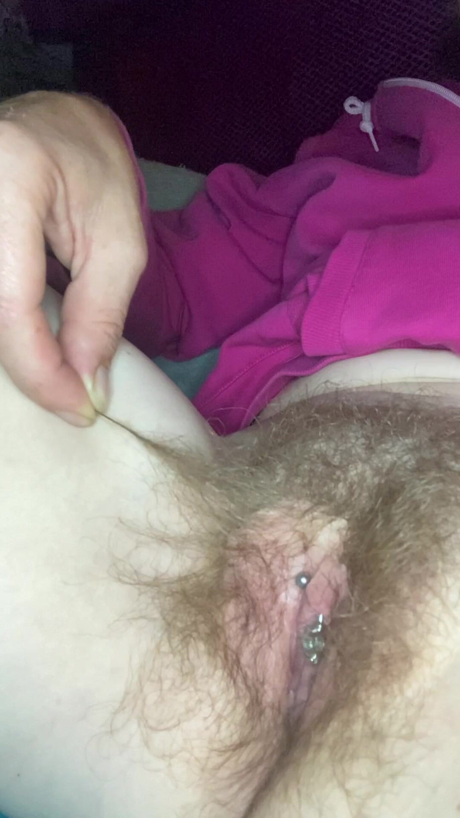 Watching TV in bed at night, bored and horned up! I had two choices. To get up and have a boring pisser OR make it flood my hairy pubic forest and bed with lust lube!
