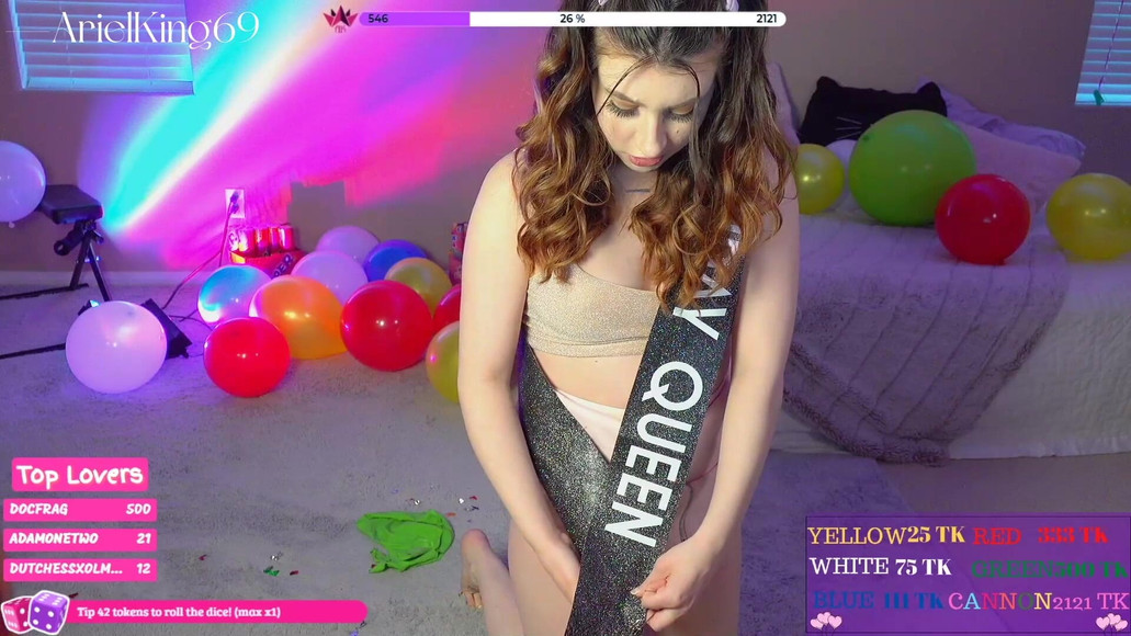 In my special birthday stream highlight from 4-11-2020, I celebrate by popping off party balloons and it makes SUCH a mess! Stripping down, and trying on my strap-lingerie leads to fucking my pussy with my BIGGEST dildo.