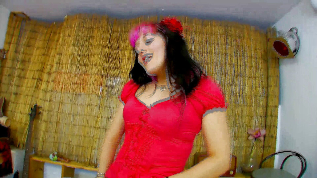 Sexy girl in red stockings and coloured hair gets ass fucked and squirts.