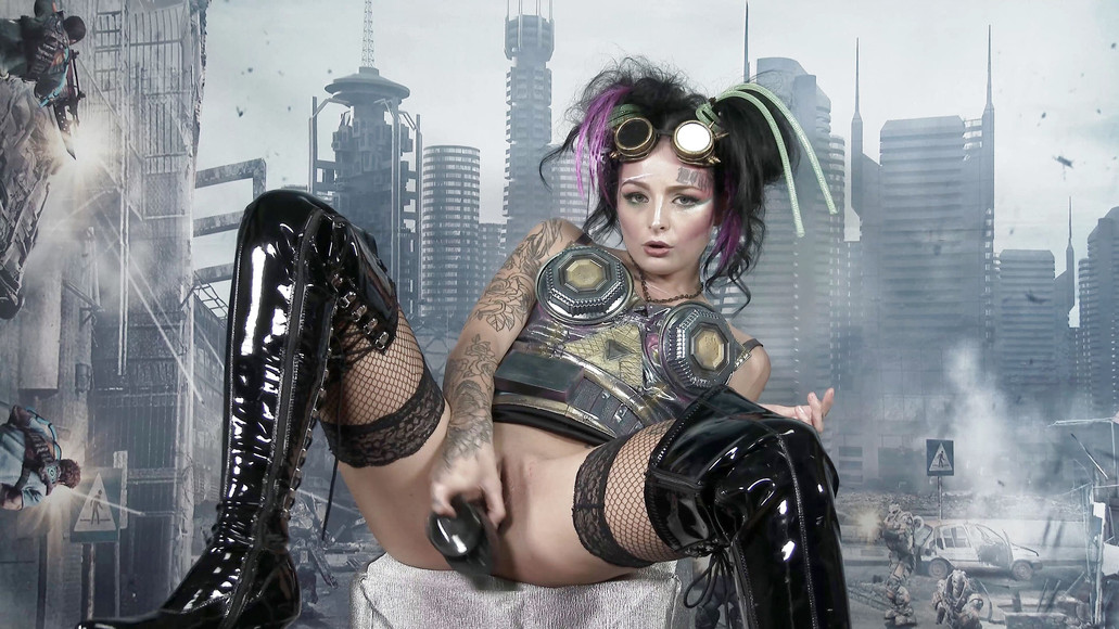 Nice czech tattoo babe masturbate with dildo in our studio cosplay theme warrior girl