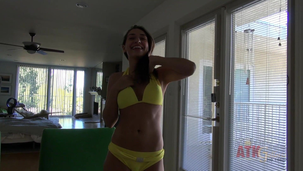 Sara Luvv loved the museum and you have her back at the pad now. You watch as she gets into her yellow bikini and drool as she lays out by the pool. Then Sara is back inside to get naked and show off her tight body. Nice!